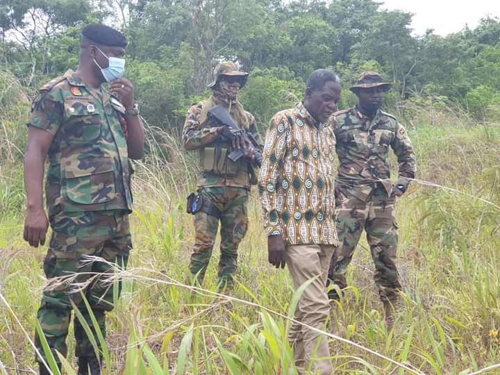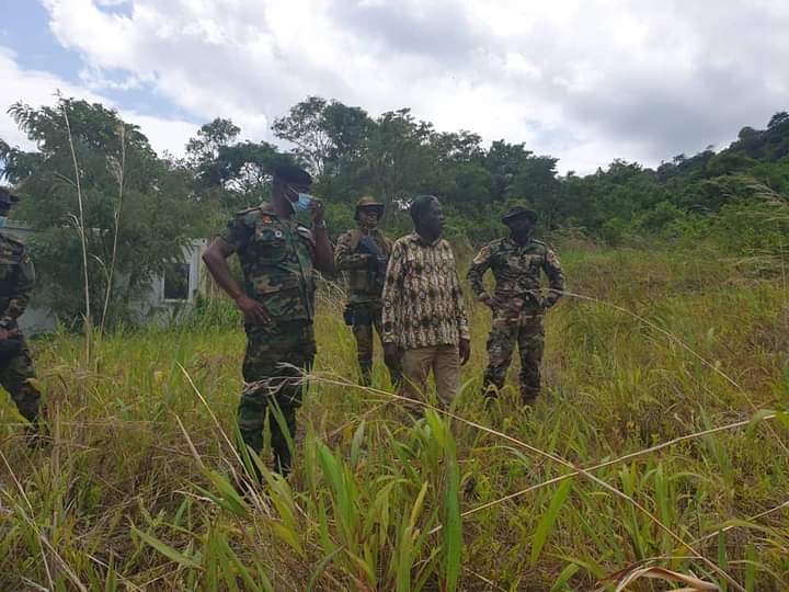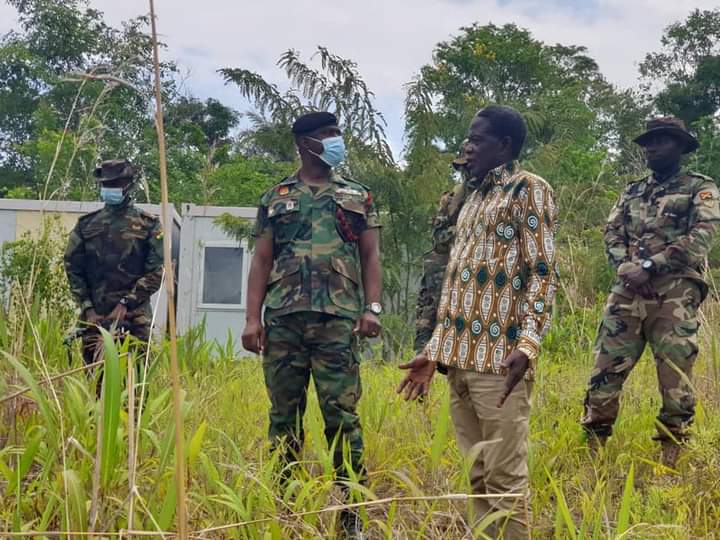 WORKING VISIT TO THE OPERATION AHUNDWO MILITARY BASE BETWEEN ALAVANYO AND NKONYA BY THE MUNICIPAL CHIEF EXECUTIVE OF HOHOE, HON. ANDREWS TEDDY OFORI AND THE COMMANDING OFFICER OF THE 66 ARTILLERY REGIMENT, HO, LT. COL. E. S. APPIAH ON MONDAY, 7TH JUNE 2021